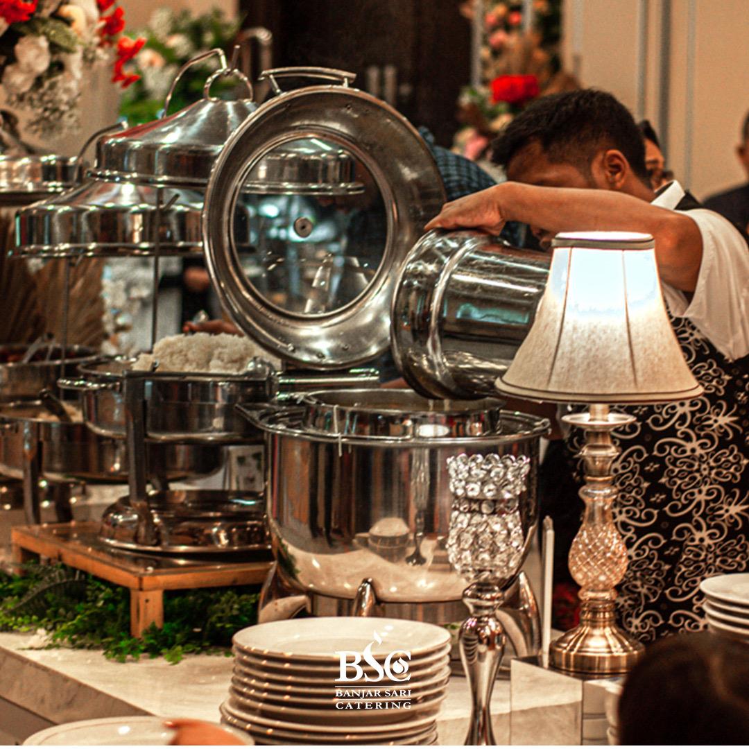 Banjarsari Catering sebagai penyedia layanan catering terpercaya yang siap memenuhi segala kebutuhan kuliner Anda. Banjarsari Catering telah melayani berbagai acara, mulai dari pesta pernikahan, ulang tahun, rapat bisnis, hingga acara keluarga. Kami percaya bahwa setiap hidangan memiliki cerita dan kami berkomitmen untuk menyajikan makanan yang tidak hanya lezat tetapi juga menggugah selera dan menghangatkan hati. Dengan menggunakan bahan-bahan berkualitas tinggi dan segar, setiap menu yang kami tawarkan dipersiapkan dengan penuh cinta dan perhatian oleh tim chef profesional kami.