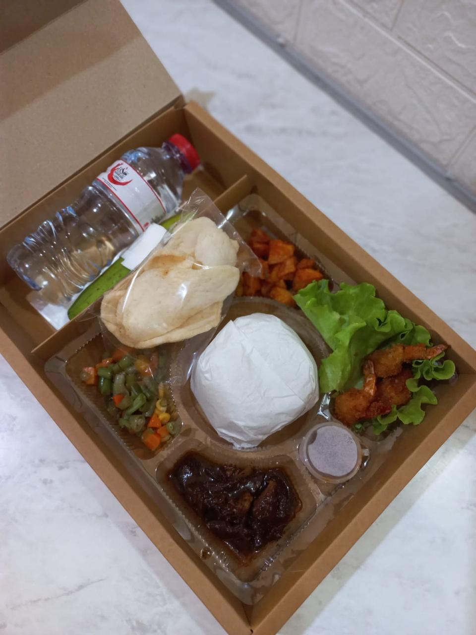 Meal Box Nasi Kemas untuk berbagai acara, dari syukuran, konsumsi panitia pernikahan, hingga acara kantor.Pilihan Menu Kami